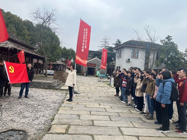 联合党日活动中,数统院各支部党员教师在院党委书记贾冰的带领下再一次面向党旗庄严宣誓,又一次喊出“对党忠诚”的誓言。每位党员教师还按照所属支部手抄入党誓词,重温入党初心,洗礼了思想,锤炼了党性。低矮的旧屋,斑驳的墙壁,青翠欲滴的绿色铺满了一条条石径路,蜿蜒向前。青板砖、落山石、鱼鳞瓦印记着当年的革命岁月,黄灿灿的油菜花迎接着新的征途。作为新时代高等教育实践者的我们,应在新的征程上勇毅前行,不负时代使命,为党育人,为国育才,用青春谱写中华民族伟大复兴的辉煌乐章。