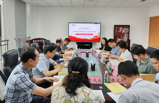 本次联学研讨的主题是《习近平新时代中国特色社会主义思想学习纲要》第十一篇章:建设社会主义文化强国——关于新时代中国特色社会主义文化建设。由扬州大学数学科学学院党委副书记高延安、我校数统院副院长朱建分别进行领学。