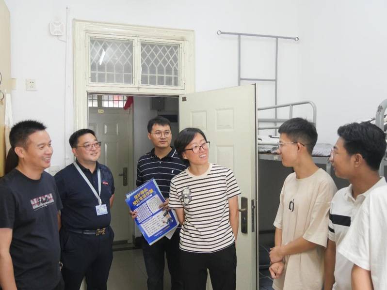 院党委书记贾冰一行来到迎新现场,亲切慰问迎新志愿者,并要求大家保持热情,为新生提供周到服务。随后,贾冰来到新生宿舍,与到校新生及家长亲切交谈。“从哪里过来的?宿舍满意吗?注意防范电信网络诈骗……”她详细询问学生的家庭情况,勉励新同学要尽快熟悉校园环境,进入学习状态,明确四年目标,同时注意人身财物安全,尤其要提高警惕,防范电信网络诈骗。