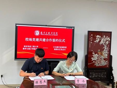 为深入贯彻落实新时代党的建设总要求,深化校地融合协同发展,9月19日,数学与统计学院党委与盘城街道落桥社区党总支正式签署党建共建协议。盘城街道办事处副主任李永浩、落桥社区党总支书记陈恩杰、数统院党委书记贾冰等出席共建座谈会。共建座谈会在藕舫楼629会议室举行党建共建座谈会。落桥社区副书记徐玮、副主任宗远蓓、余庭俊、邹荣胜,数统院院办主任王文婧、团委书记靳蕊卉、学办主任丁杰以及研究生党员代表参会。