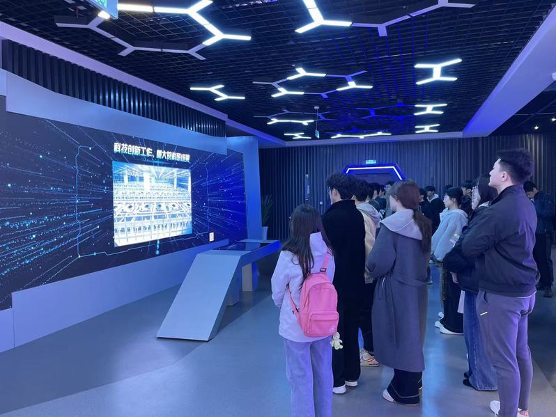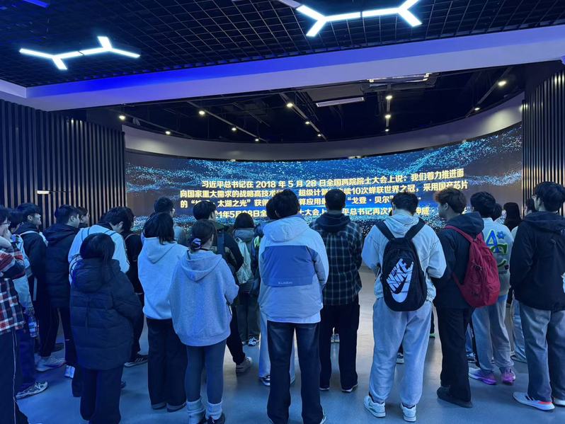 下午,师生一行抵达国家超算无锡中心。工作人员首先详细介绍了中心的建设背景、定位使命及在国家科技创新体系中的核心作用,让大家对“国之重器”的战略意义有了深刻认知。随后,通过专题视频、现场讲解等形式,同学们深入了解了“神威·太湖之光”超级计算机自主创新的研发历程与一系列举世瞩目的辉煌成就。在工作人员的引导下,同学们穿戴工作服进入主机房,近距离观摩超级计算机运行状态,系统了解其在气象预报、航空航天、生物医药、新材料研发等关键领域的应用,直观感受其强大算力带来的创新赋能,真切体会到科技的温度与力量,更激发了大家学习数学专业的兴趣与自信心。