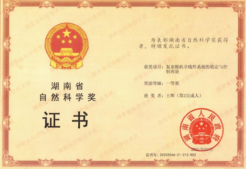 · Hunan Province Natural Science Award (2011)