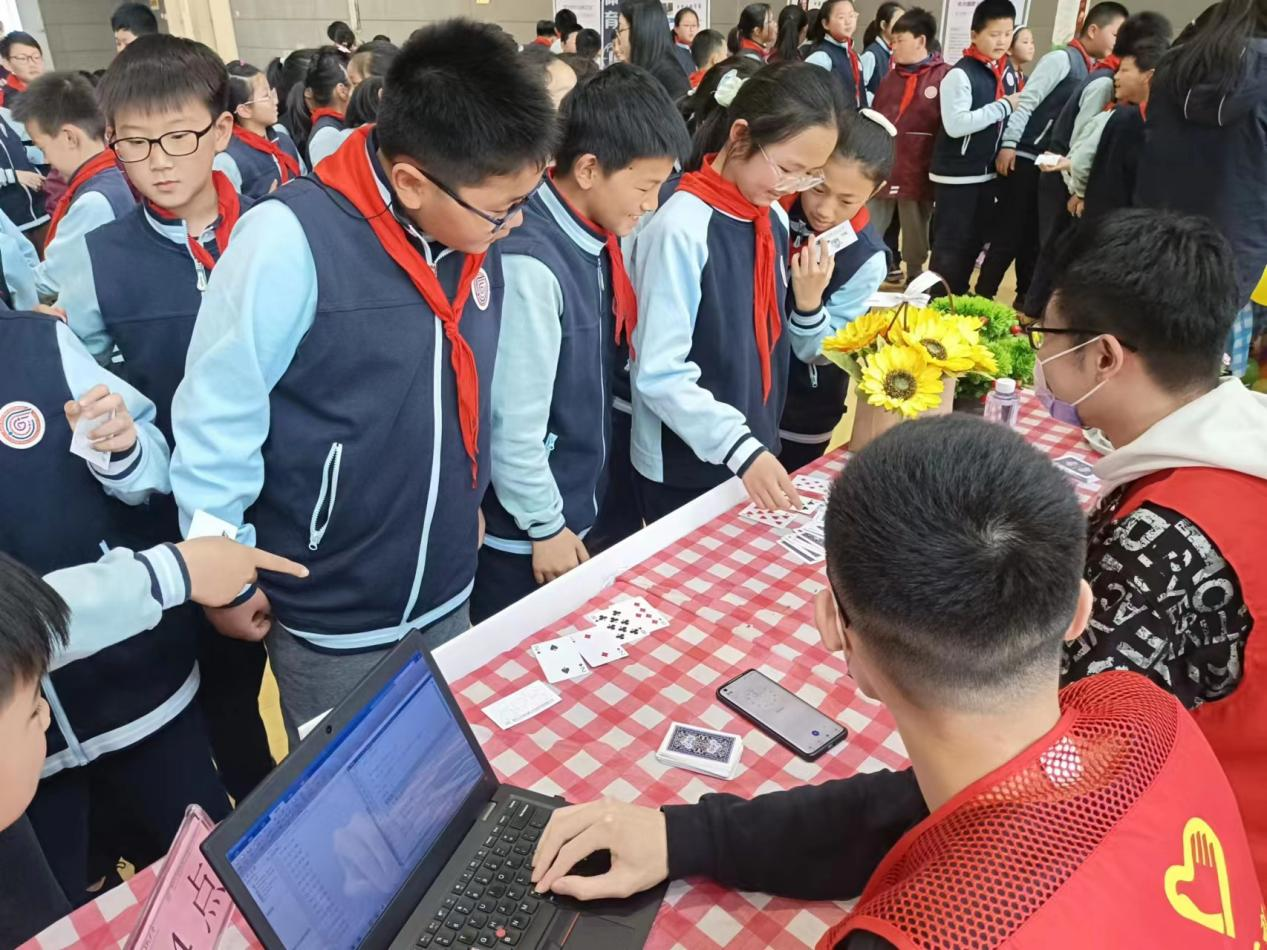 二十四点是小朋友们最喜欢的数学游戏之一,看他们抽牌时的紧张,心算时的专注,算出得数后的激动,大学生们都忍不住参与其中!