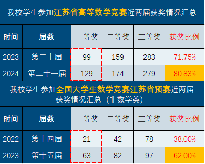在专业课程方面,进一步拓宽课程的学习广度和深度,延伸课程学习时间,吸引更多学生从专业走向拓展。在创新创业教育方面,坚持以赛促学,以赛促教,将学科竞赛作为人才培养的重要组成部分。近年来,我校学生高等数学期末卷面成绩逐年提高,参与数学类学科竞赛的获奖人数也在逐年递增。