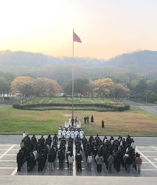 为赓续爱国精神血脉,迸发青春奋进力量,引导青年学子勇担时代使命、笃行实干担当,12月8日清晨,数学与统计学院在滨江楼南广场隆重举行“致敬国旗、礼赞祖国”主题升旗仪式。数统院党委副书记、副院长邱章强、高年级学生代表和2025 级全体同学齐聚现场,升旗仪式由院团委书记靳蕊卉主持。