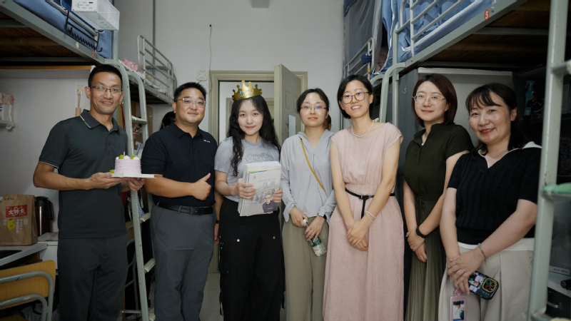报到当日,“大学心愿寄语”环节温情满满。新生写下自己大学四年的期许,将心愿卡挂于银杏枝头,金黄枝叶与青春梦想相映,寄托学院对学子“逐梦成真”的祝福。学院党委书记贾冰带队走访新生宿舍,了解报到进度与服务保障,与新生及家长亲切交流,询问需求与感受,鼓励学子调整心态、规划学业生活,为长远学习筑牢根基。恰逢两名新生在报到当日迎来生日,学院领导携定制蛋糕、专业课笔记汇编与函数计算器送上惊喜,祝愿他们的大学之旅充实圆满。