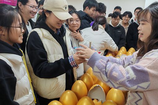 出征仪式在暖场音乐《我相信》和视频《考前指导》中拉开帷幕。仪式伊始,邱章强代表学院对同学们在备考期间展现出的辛勤努力和高度自律给予了充分肯定,鼓励同学们在接下来的备考过程中要调整好心态,全力以赴、坚持到最后一刻。他表示,学院将一如既往地关注和支持考研学子,为大家提供支持和保障。同时,他也祝愿所有考研学子都能乘风破浪,在即将到来的考试中取得佳绩。出征仪式上还特别播放了来自考研学生家长、成功上岸的往届学生及在校本科生的祝福视频,视频中饱含温情的鼓励与真诚的期盼,激励着在场的考研学子在备考征途中继续奋勇前行。随后,各班班主任和辅导员依次从备考心态、考试注意事项、考研寄语等方面为同学们送上实用的建议及诚挚的祝愿,鼓励同学们以从容之态面对挑战,走好考研之路。各班班主任老师还在仪式现场为考研学子送上了学院精心准备的文具大礼包,并指导同学们在卡纸上书写心愿,折成纸飞机,放飞梦想。满载着期许的纸飞机从仪式现场飞向远方,寓意同学们心怀梦想,勇敢启航。活动最后,为缓解备考压力,出征仪式特别设计了互动环节。同学们以班级为单位参与踩气球、扑克牌抱团、砸金蛋等趣味游戏,他们在游戏中开怀大笑,有效地释放备考压力。