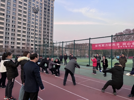 为迎接新年的到来,丰富广大教职工精神文化生活,提高团队合作能力和坚韧不拔的精神,数学与统计学院分工会于2025年1月2日组织开展了“凝绳聚力绽风采,同心奋进迎新春”拔河比赛。