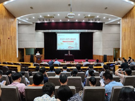 为切实增强广大党员干部及全院教职员工的纪律意识,根据校党委党纪学习教育有关安排,院党委书记贾冰首先在会上讲授了党纪学习教育专题党课。她从党纪学习教育的重要意义、条例相关条文的学习、典型案例剖析和学思践悟四个方面进行了讲解。她说,开展党纪学习教育是加强党的纪律建设、推动全面从严治党向纵深发展的必然要求;是教育引导党员干部学纪知纪明纪守纪,提高自身党性修养的必然要求;是加强师德师风建设,落实立德树人根本任务的必然要求。她阐释了政治纪律、组织纪律、廉洁纪律、群众纪律、工作纪律、生活纪律的内涵和要求,带领全院教师逐条学习了新修订的《中国共产党纪律处分条例》中与高校教师岗位息息相关密切相关的条文。在案例剖析环节,她通过近年来教育部公开通报的发表错误言论、学术不端、违规报销科研经费、违背公序良俗等典型案例,结合《中国共产党纪律处分条例》《事业单位工作人员处分暂行规定》《教育部关于高校教师师德失范行为处理的指导意见》《新时代高校教师职业行为十项准则》等进行了深入剖析。最后,贾冰围绕学、思、用贯通,知、信、行统一交流了自己的学习感悟,要求全体教职工守牢底线、不碰红线、追求高线,以优良教风带动优良学风,立德修身、铸魂育人。