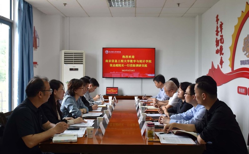 尹志丽书记对南信大数学与统计学院领导班子一行的来访表示热烈欢迎。唐加山院长和张志超院长分别从学科建设、专业建设、科学研究、学科竞赛、人才培养等方面介绍了各自学院的概况。