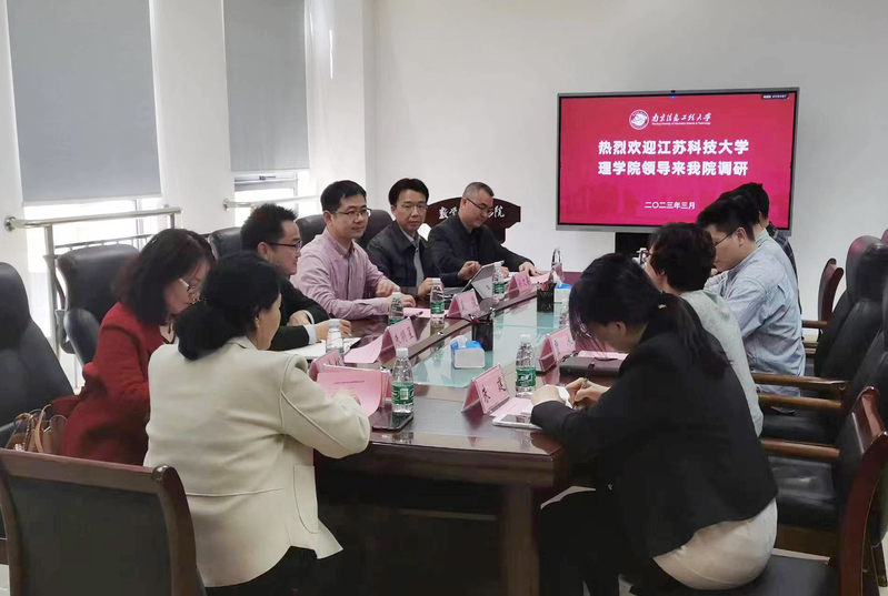 3月10日下午,江苏科技大学理院院长戴俊、党委书记徐文睿一行六人来我院调研交流。我院院长张志超、党委书记贾冰等院领导班子全体成员参加调研座谈会。座谈会由贾冰主持。