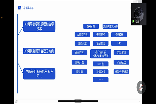 随后,有着“offer收割机”之称的罗昊同学也分享了三年来的成长经历。他在校期间自学软件开发,独立完成了含网站、小程序等在内的多个项目,同时也是Gitee、GitHub等社区开源项目贡献者。从大二起至今,罗昊共收获了阿里巴巴、腾讯等十余家互联网公司实习offer。他从如何定位个人努力方向、如何平衡学校课程和自学技术、如何面试与增强岗位技能等多个方面提出了自己的建议,并呼吁同学们要认真学好每一门功课,历练本领,在职业选择上要拓宽眼界、大胆自信,为将来就业打好基础。