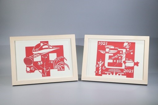 2019级信息与计算科学专业的谢天泽以三组纸雕作品获得了二等奖。第一组以红船和一大会址的图案展现了党的开端,第二组主要将我国具有代表性的科技成果融入到“中国”二字中,包括东方红一号、神州系列飞船、蛟龙号、高铁和杂交水稻等等。第三组是纸雕挂件,包括人民英雄纪念碑、鸟巢、中国歼系列战机等等。