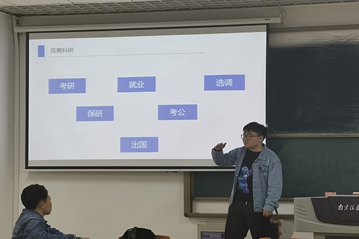 金世龙同学则从基础学习、竞赛科研、校园生活、未来规划这四个方面分享了他的经验。他详细介绍了部分专业课程的学习经验,以及大学英语四六级、计算机等级考试等的备考心得;展示了他丰富多彩的竞赛经历和文体活动经历,表明了学习和丰富的校园活动是可以兼得的。他还介绍了毕业后的不同成长路径,让大家充分了解发展前景。