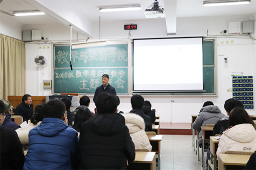 为落实高校立德树人根本任务,促进优良学风形成,数学与统计学院于12月16日晚在明德楼N108举行2018级应用数学1班主题班会。本次班会特别邀请2018应数班班主任,校党委副书记、副校长王尧做主题班会报告。出席本次班会的还有学院党委副书记、副院长徐锋华,班主任吴笑醒,全体辅导员及2018级应数1班全体同学,会议由徐锋华副书记主持。