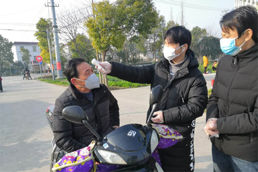 入党积极分子张晓亮返乡后发现村委会人手有限,工作繁忙,便主动站出来,协助村里的出入登记工作。每天早上7点半就到金山路口站岗,负责检查进出人员的出入证以及测量体温的工作。在每天的志愿工作之余,他还发动其他同村的大学生朋友,一起组建志愿者团队,深入住户,耐心细致地向村民群众宣传防疫知识,叮嘱村民减少外出活动,杜绝聚众打牌,提醒村民不信谣,不造谣,不传谣。