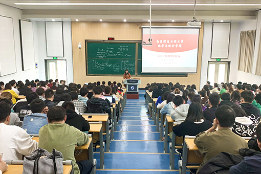 为动员2017级学生明确大学目标,积极深造,加强数统院的学风建设,10月17日,数学与统计学院于北辰楼东阶教室开展了2017级学生考研动员大会,学院统计系主任来鹏、信计系主任王廷春、数学系主任张孝金和院分团委书记王文婧,以及2017级全体同学参加了此次会议。