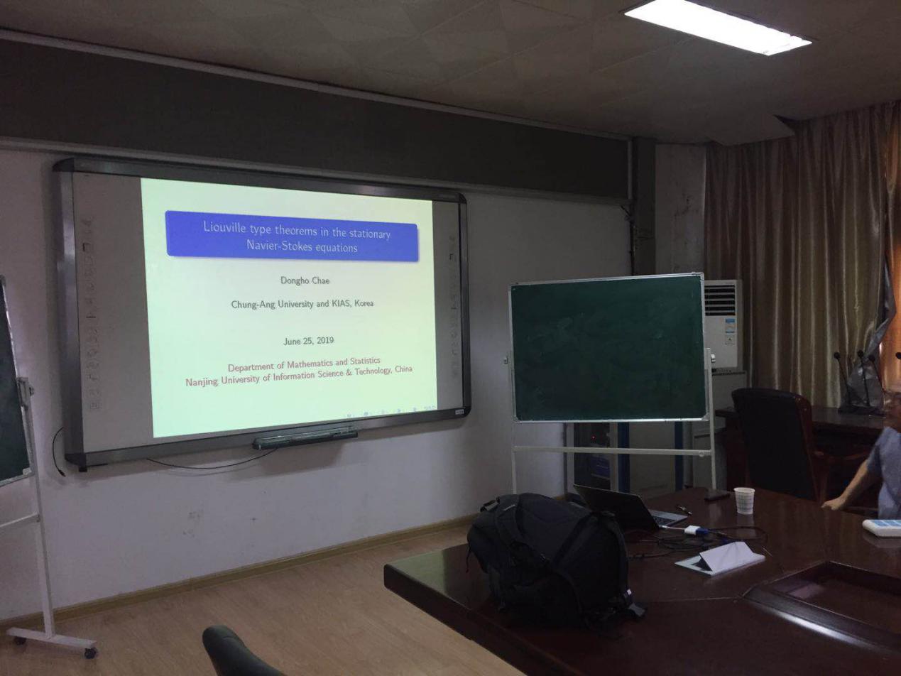 2019年6月25日,韩国中央大学杰出教授(Distinguished Professor)应南京信息工程大学数学与统计学院李子劲博士邀请,访问南京信息工程大学数学与统计学院。