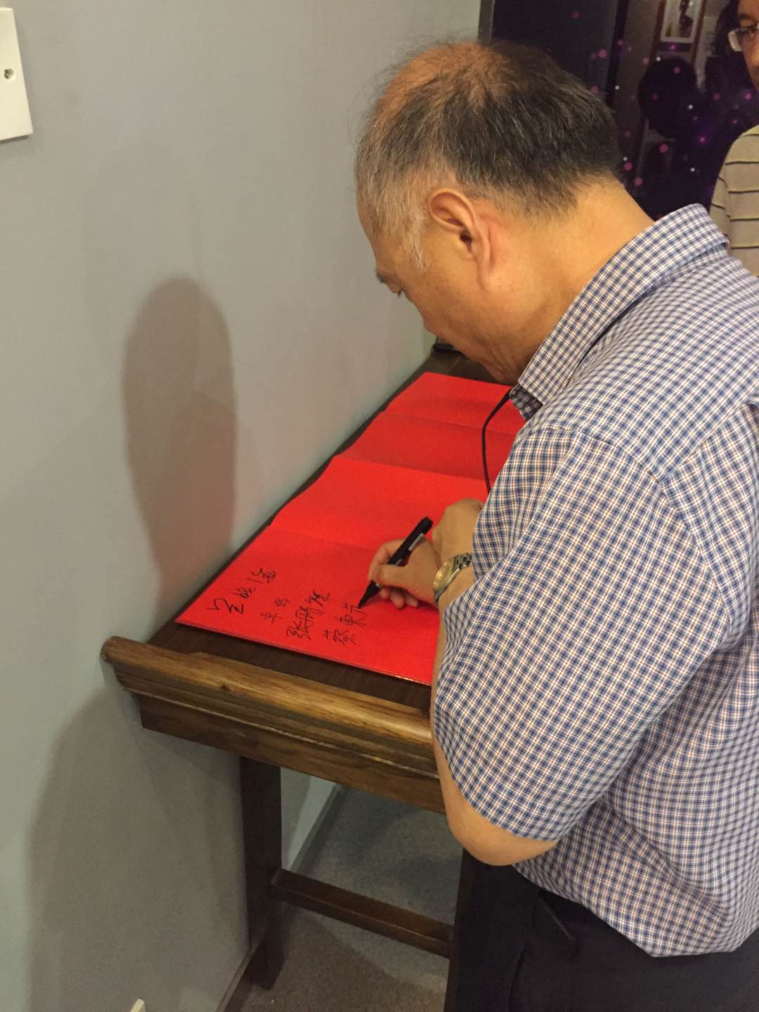 图5: 参观结束后,Dongho Chae教授于校史馆签名册上签名