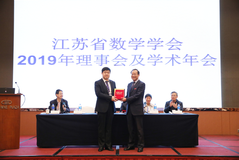 4月13日上午,江苏省数学学会学术年会暨第六届江苏省数学奖颁奖大会上,我校数学与统计学院蒋飞达教授荣获第六届江苏省数学成就奖,江苏大学副校长、党委常委丁建宁教授向蒋飞达颁发了获奖证书。