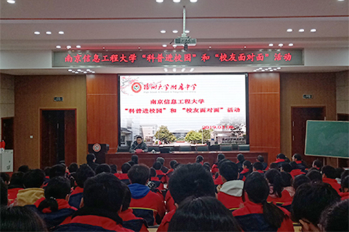3月6日上午,数统院“校友面对面”活动在扬州大学附属中学举行。扬州大学附属中学副校长李岚,数统院党委书记周祥龙、团委书记王文婧、空间天气教师武业文和14级应用数学专业学生冯冒桐以及扬州大学附属中学高一6班、12班和14班的全体学生参加了本次活动。活动由扬州大学附属中学学工处主任赵红兵主持。