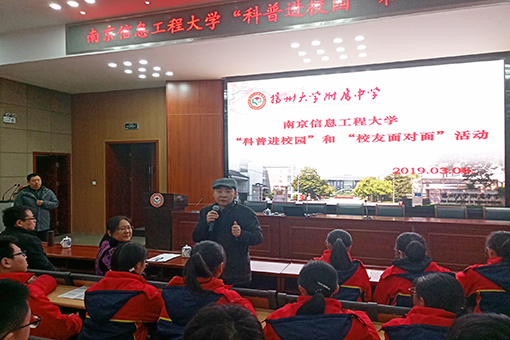 随后,武业文老师以“迈向太空——空间天气学”为主题,从学生们感兴趣的科幻电影出发,向学生们科普气象类知识,不仅吸引了学生眼球,同时激发了学生对科学的兴趣。