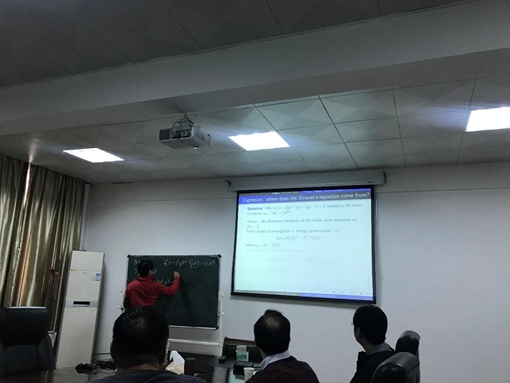 11月25日下午,应数学与统计学院邀请,浙江大学博士生导师王成波教授在我校尚贤楼706会议室作了题为“双曲空间中的非线性波动方程”的学术报告。数学与统计学院相关方向的教师与研究生聆听了报告会。