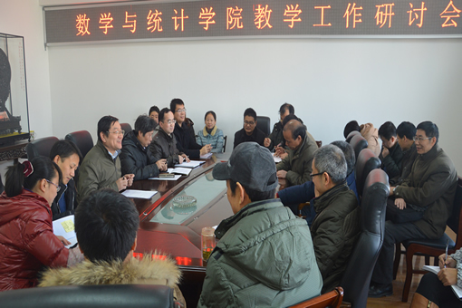 12月26日上午,数学与统计学院在尚贤楼706召开教学工作研讨会。院长蒋勇主持会议,院党委书记周祥龙,副院长夏大峰、程国胜、刘文军,副书记、副院长陈建坤,各系正、副主任,空间天气研究所负责人,两办及实验室负责人等参加了会议。