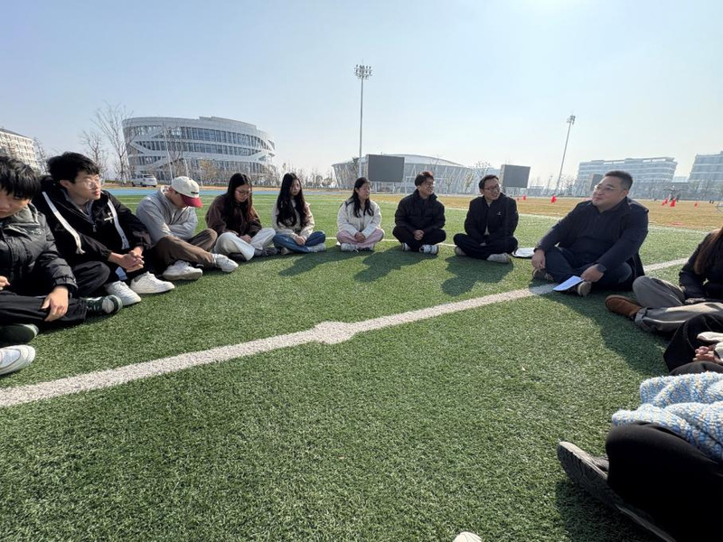 最后,师生们一起散步至操场草坪上,暖阳洒落,氛围轻松而热烈。邱章强副书记叮嘱大家,秋冬季节是流感高发期,要记得规律作息、适度锻炼,多走出实验室、宿舍,多运动、多呼吸新鲜空气。谈及导学关系,他强调,遇到学术困惑要主动请教导师,多与导师面对面沟通学习,碰到思想包袱更要及时沟通,化被动为主动。辅导员梁立法老师勉励大家结合自身专业和职业规划,主动争取优质实习机会,提前熟悉行业动态、掌握岗位技能,提升未来求职就业的竞争力。