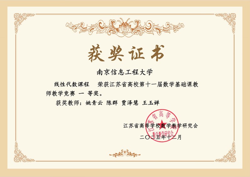 近日,第十一届江苏省高校数学基础课教师授课竞赛教学创新赛道在淮安成功举办。来自全省高校的29支参赛团队同台竞技,共话教学创新。我院教师姚青云、李亚宁参赛,凭借扎实的教学功底、鲜明独特的创新特色脱颖而出,分别获一等奖、二等奖。