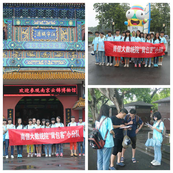 近日,我校数学与统计学院“背包客”小分队在南京开展了为期10天的暑期社会实践活动,活动主要围绕南京市旅游景点的公共标志问题进行了调查。