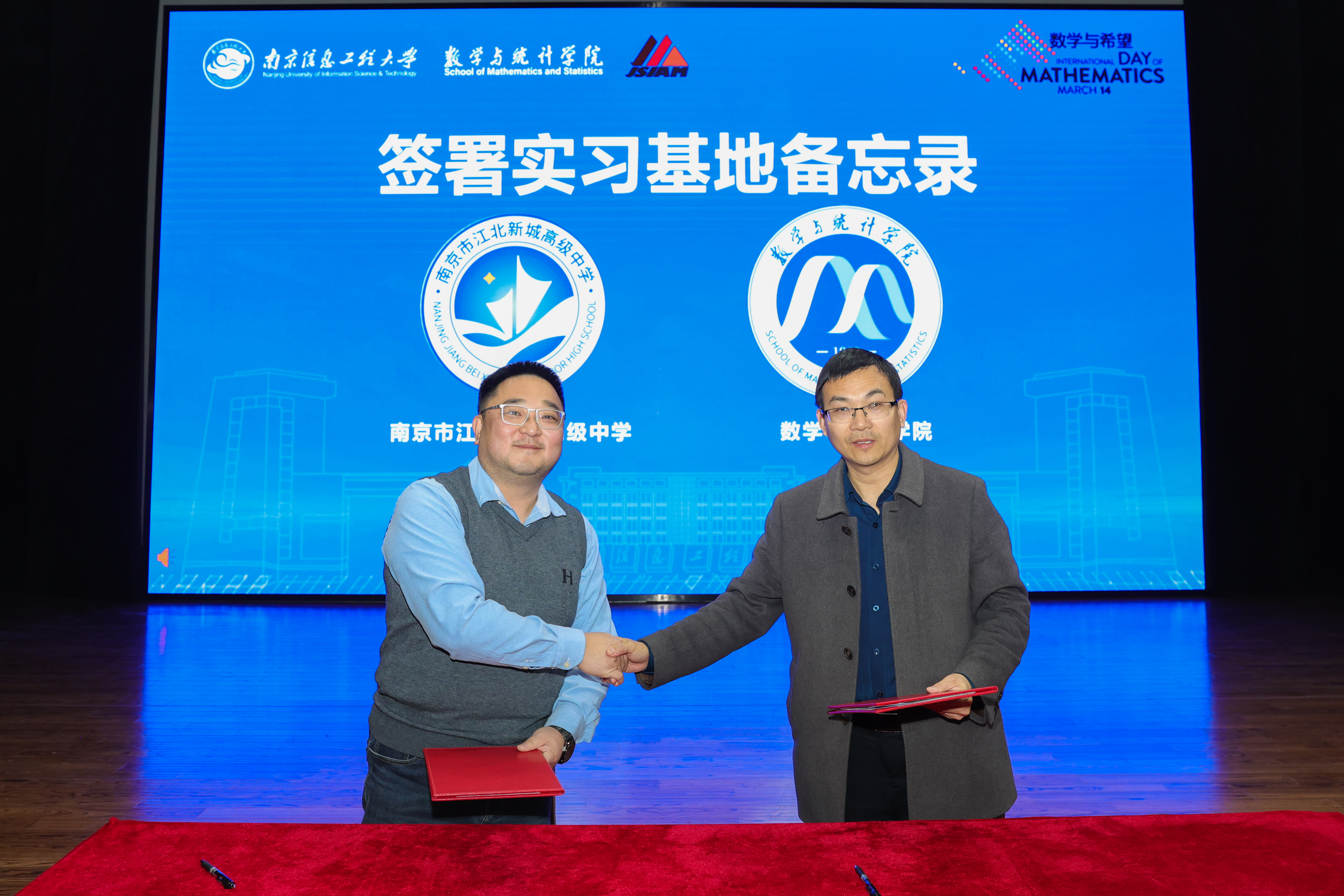 随后,数学与统计学院副书记邱章强与冯英宝共同签署实习基地备忘录,为我校数学专业学子架起课堂理论与实习实践的联通桥梁,助力学子们锤炼应用能力,为专业成长与求职就业筑牢根基。