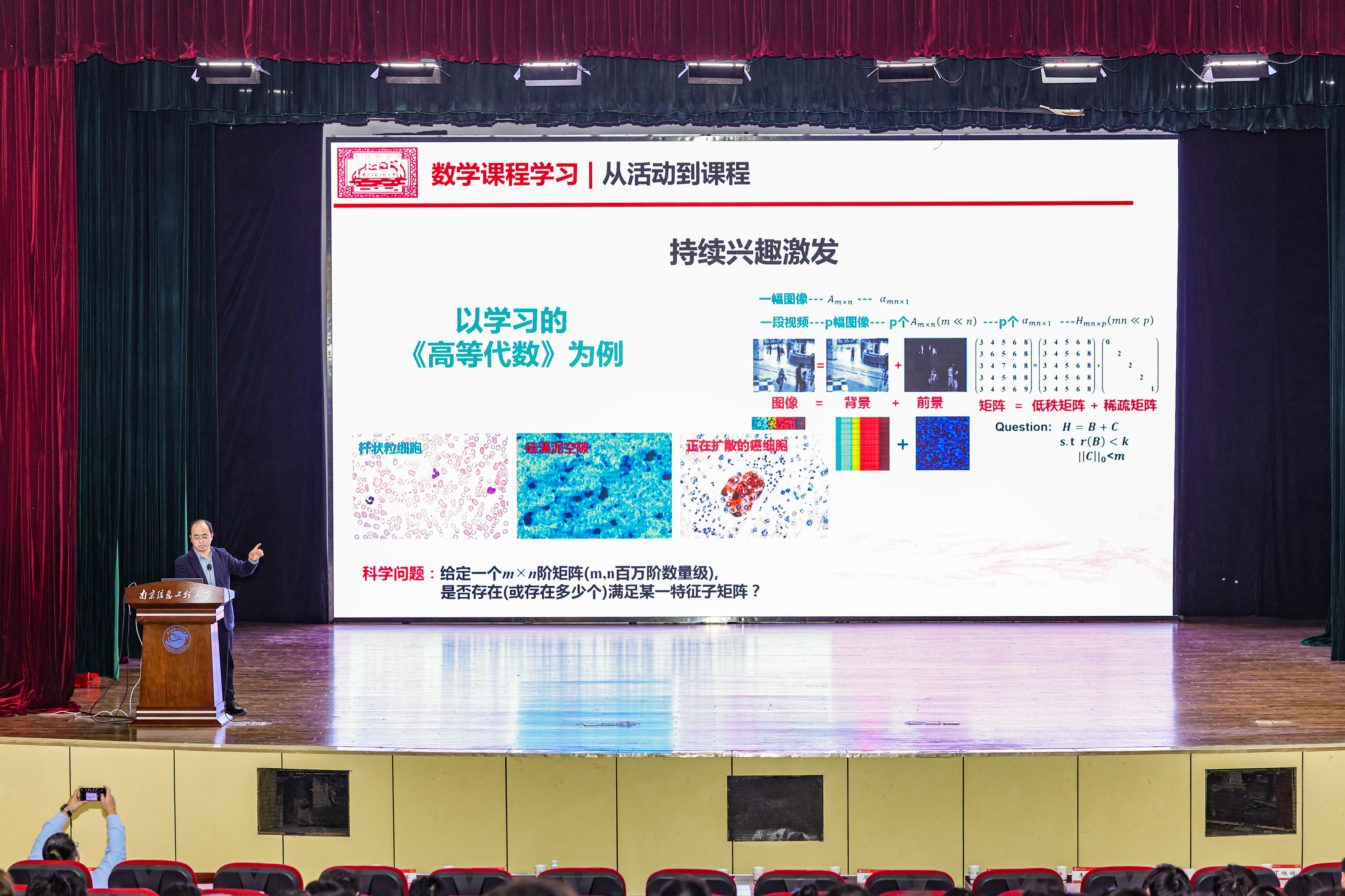 学术报告环节同样精彩纷呈,刘文军带来了一场数学学科前沿报告。报告深入浅出、视野开阔,既解读了数学学科的最新发展动态,又结合学校学科特色,为师生们探索数学与大气科学、信息科学等学科的交叉融合提供了宝贵思路和方法,让现场师生深受启发、收获颇丰。
