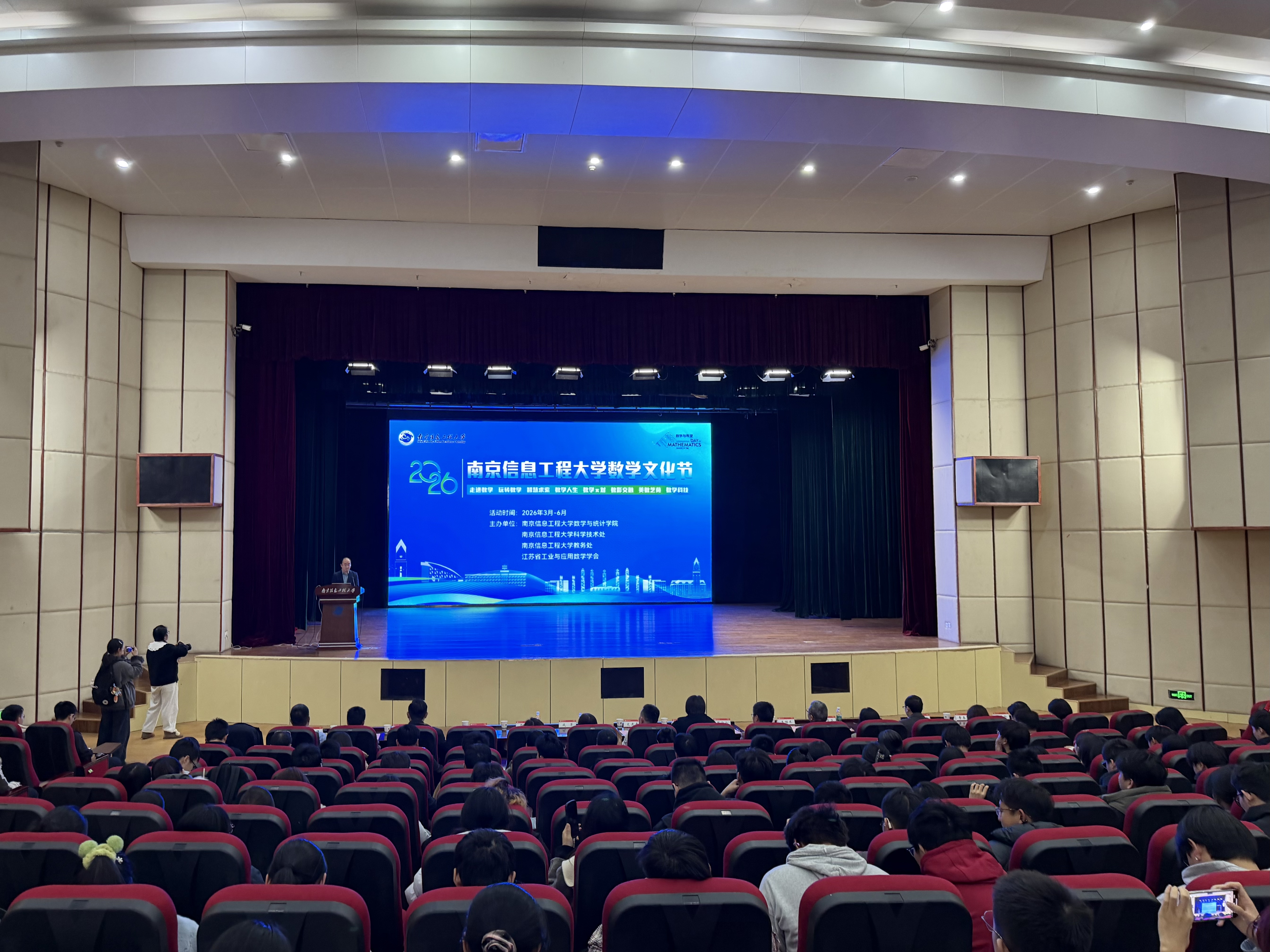 数蕴希望,学科向荣。3月13日,我校2026年数学文化节在大学生活动中心开幕。本届文化节紧扣2026年国际数学日“数学与希望”主题,以弘扬数学文化、深化学科融合、培育创新人才为核心,为全校师生奉上一场兼具学术深度与趣味活力的数学盛宴。我校副校长刘佳,南京市江北新城高级中学理事长冯英宝,数学与统计学院2023届校友、南京华云英格网络科技有限公司董事长霍昱安,校友办、教务处、科技处、研工部、学工处等相关职能部门和各学院负责人出席开幕式,全校各学院师生代表共600余人齐聚现场。开幕式由数学与统计学院执行院长刘文军主持。