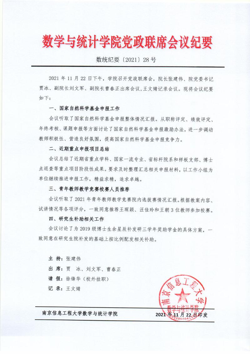 学院党政联席会议纪要(2021年11月22日)