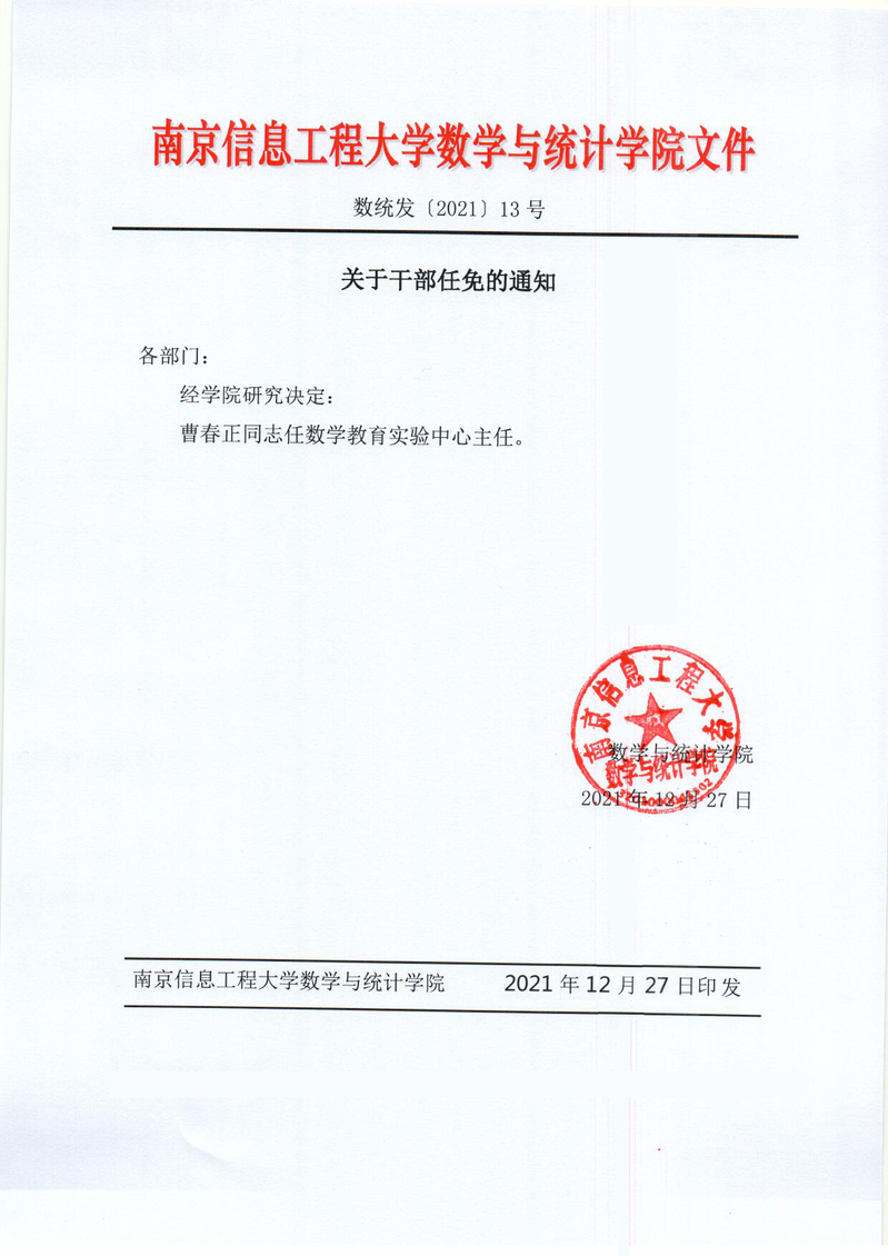 关于成立数学与统计学院教职工年度考核工作小组的通知