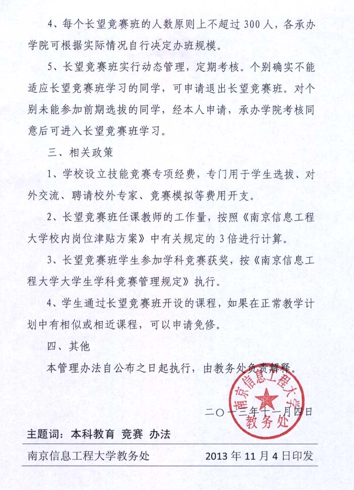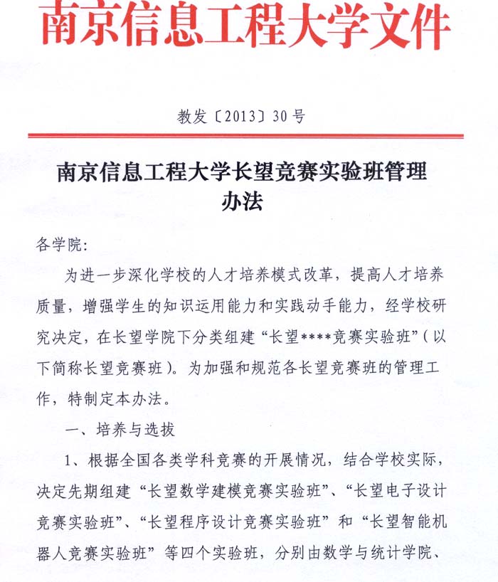 南信大长望竞赛实验班管理办法