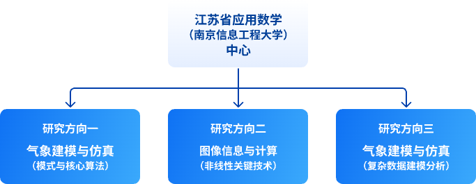 江苏省应用数学(南京信息工程大学)中心是江苏省科技厅于2022年5月批准设立的科研平台。中心立足南京信息工程大学大气科学国家“世界一流学科”建设学科和数学“江苏高校优势学科”建设学科,面向江苏地方和中国气象行业战略需求和国际国内科技前沿,开展气象与数学应用研究,着重探究现代气象业务中各项关键技术的应用数学方法与技术,为现代气象服务提供支撑技术和解决方案。