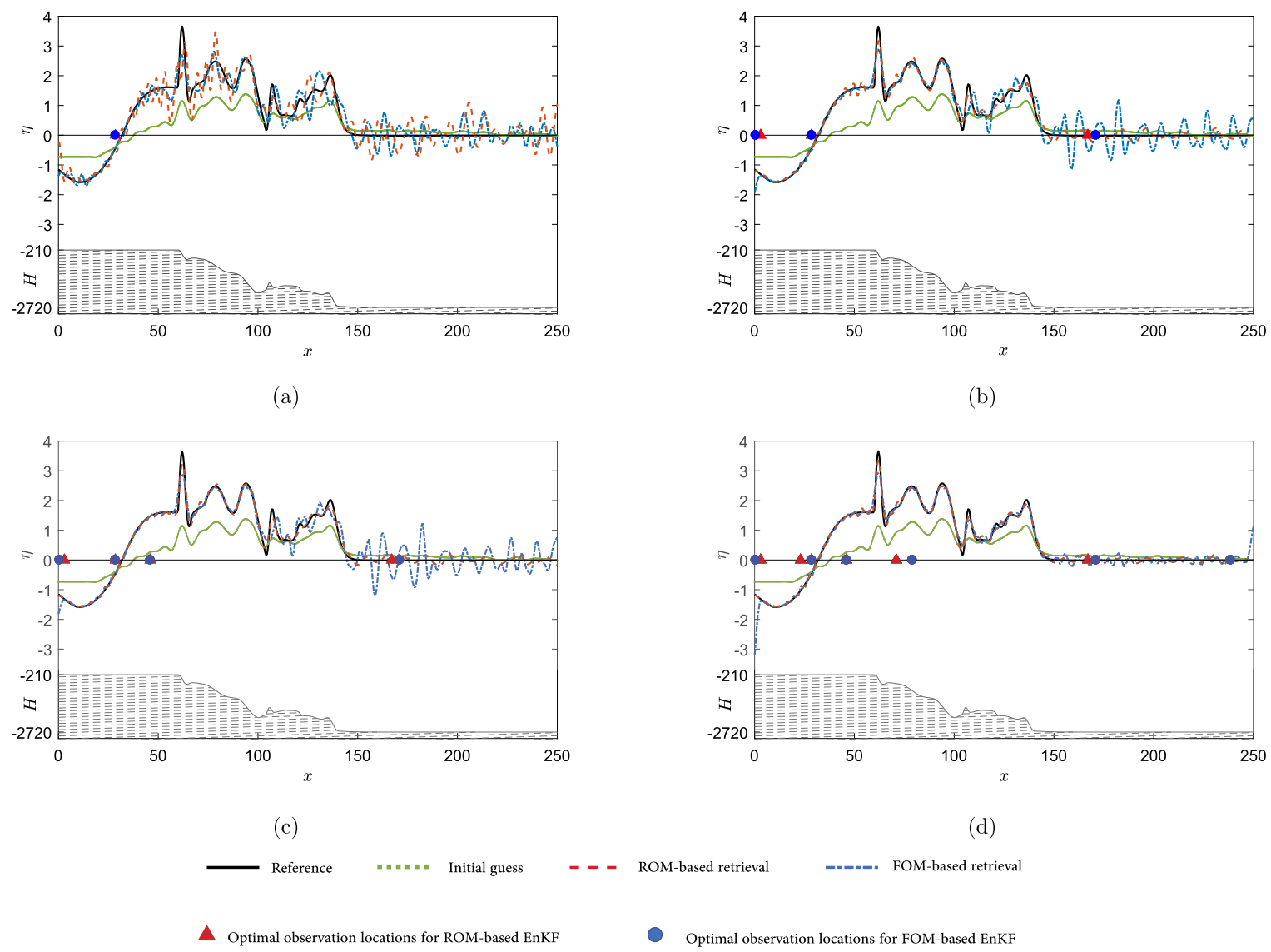 不确定性量化问题在灾害评估、气候变化等方面研究中的重要性越发受到重视。当前,尽管使用降阶模型来替代原模型在一个低维空间实施资料同化对于减少计算成本发挥了重要作用,但要在此基础上同时探索原空间最优观测位置确定以进一步减小计算和应用成本仍然受到研究和实际关注。该论文借助压缩感知思想自适应选择观测位置,自适应更新降阶模型,构建了可行的降阶集合卡尔曼滤波算法。主要结论有:提供了最优数量的降阶基;降阶基的数量远小于传统方法得到结果;成功实现了降阶集合卡尔曼滤波(ROM-EnKF)与离散经验插值(DEIM)的结合;有效地进行了波场重构;稀疏观测位置的确定有利于观测仪器的布放和观测组网的应用.
